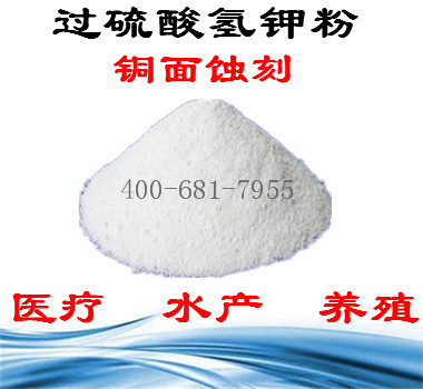 单过硫酸氢钾复合盐(单过硫酸氢钾盐、单过硫酸氢钾、微蚀盐)是一种稳定、方便、具有广泛用途的优良的酸性氧化剂,具有非常强大而有效的非氯氧化能力,使用和处理过程符合安全和环保要求,因而被广泛的应用于工业生产和消费领域。通常状态下比较稳定,当温度高于65℃时易发生分解反应。比较活泼,易于参与多种化学反应,可作为氧化剂、漂白剂、催化剂、消毒剂、蚀刻剂等。